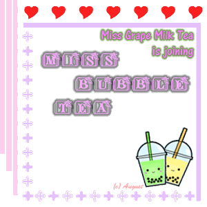 Apply *scroll down to apply* OPENED TO ANY PEOPLE. all those members must: MUST report at least once per three days. MUST participate in all events unless dono. MUST put up banner [ P.S at banner navi ] MUST know th basic HTML ; & know how to make banners. On haitus? Let th admin know. available names: Milk Tea >> Miss DoubleThick Milk Tea [new] >> Miss Kewl Milk Tea >> Miss Coral Milk Tea milk tea-s will be promoted into administrators in a few months, depending on how active they are. If unactive or i donwan, sorry.. u will not be promoted. {banner-certificates will be given to those who aint promoted} Ice Blended >> Miss Thin Ice Blended >> Miss Coral Ice Blended Ice blended will be promoted to a higher status , then to milk teas , [if they want, some will remain]. Red Tea >> Passion Red Tea >> Pearl Red Tea >> DoubleThick Red Tea Soda >> Miss NoPearl Soda >> Miss Original Soda Red teas && Soda will be promoted to Iceblend/MilkTea depending on how active they are.& some will remain. Bubble Tea-s[new] >> Miss ThickChoco Bubble Tea >> Miss Thin Slim Bubble Tea Bubble Teas are random && are chosen by me whether to moved them to admins or nort May choose your own name ;D but only for 5 diff groups: Milk Tea, Soda , BubbleTeas, Iceblended && Red teas Look above ;D Click here or below. |